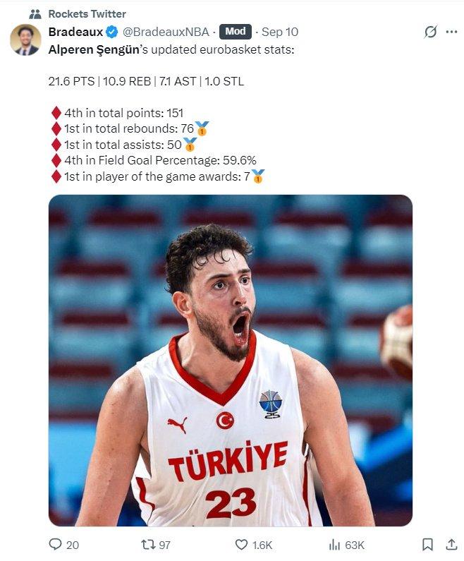 申京今年才23岁,上赛季已经是全明星+只差10分就入选最佳第三阵容,申京是联盟前五中锋太正常了,说他有希望进入联盟前十超巨范畴都可以,火箭只给他五年1.85亿远低于顶薪的合同更是赢麻了, 火箭老板费尔蒂塔才是最大赢家。